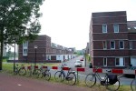 Rechts van de vernieuwbouw het lege, grote veld waar ooit Egeldonk stond, en weer daarnaast de nieuwbouw waar vroeger de galerijflat Eeftink stond.