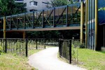 - Onder de loopbrug tussen garage en rest torens Groenhoven zijn om stukjes kaal gras planten op rij neergezet, die weer beschermd worden door luxe hekken, terwijl in het midden van het fietspad een hindernis is neergelegd. Als je elkaar daar passeert ram je ofwel een hek of de verkeers-hindernis.