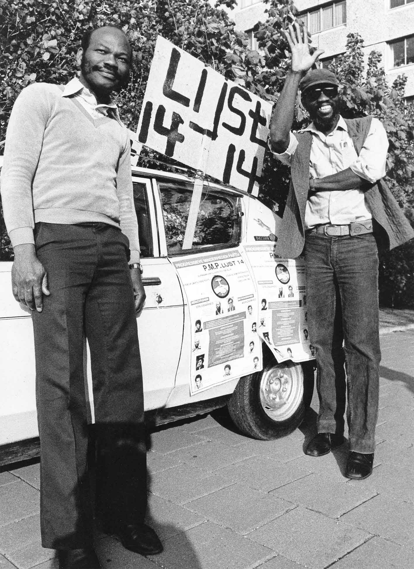 Daar staat ie: gezellig grijnzend met zonnebril, rechts, met Ronald Neslo, op naar een zetel in de gemeenteraad met de Progressieve Minderheden Partij. Nee, Joesoe/Yoessoef/Jules Maatrijk, kwam niet in de gemeenteraad, maar later wel een periode in de stadsdeelraad, met een eigen partij, altijd te vinden in de bibliotheek, en nooit in de raadszaal, behalve als er herrie geschopt moest worden terwille van de achterban. Jules Maatrijk, privé uitbater van de collectieve ruimten Kruitberg, oprichter van de hosselbar ISHOS in wijkaccommodatie Ganzenhoef, en beroemd geworden midden jaren ’70 toen hij met vrienden de Gliphoeve-flats kraakten voor al die landgenoten die Suriname ontvluchtten vanwege de onafhankelijkheid. De kraak deden ze voor 500 gulden de woning en de woningbouwvereniging Ons Belang vond het niet echt erg, want had in Gliphoeve grote leegstand, was armlastig en mocht van de gemeente en de collega wbv’s geen woningen meer verhuren aan de Surinamers.