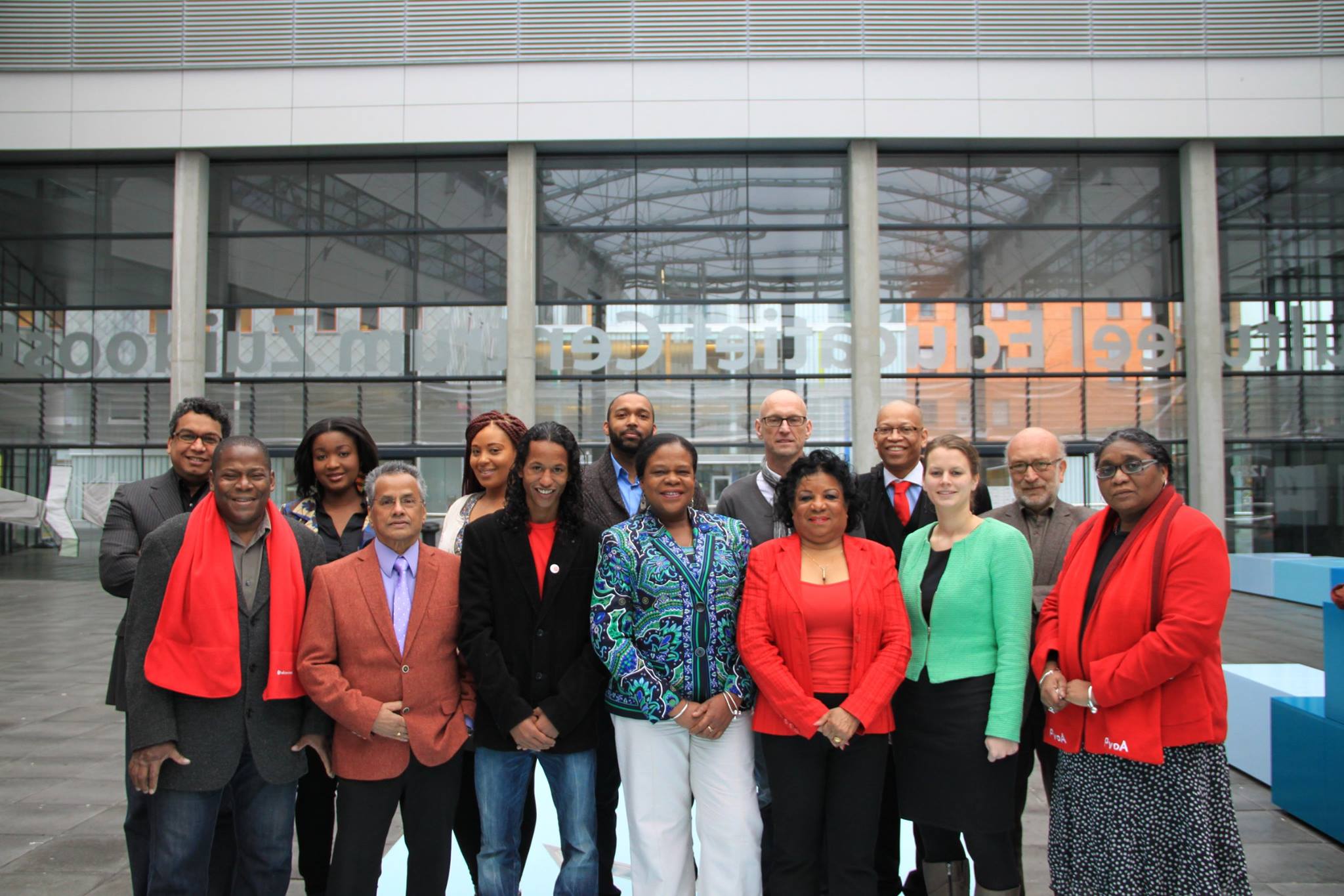 Er wapperde vanmorgen een reuze affiche van Angelo Bromet tegen een bak voor oude kleding. Leuker zijn groepsfoto’s van partijen op campagne. We hebben er een paar voor u. Van boven naar beneden: de VVD op de Poort, met in het oranje socialistenjasje Emile Jaensch; daaronder de ons volstrekt onbekende Politieke Partij Bijlmer, met in blauwe jas Jude Kehla van Platform Zuidoost, en links naast hem: Stefano van Delden van voorheen De Masterboys, die indirect in 2012 de val van Marcel la Rose inluidde; daaronder de PvdA, met 5 vrouwen + 8 mannen en Herrema, lustduwer en niet verkiesbaar: behoorlijk zwart, hoewel de zwarte kiezer niks meer van de PvdA moet hebben, zo lezen wij; en tot slot de Groen Links kandidaten voor de gemeenteraad, met 1x zwart, de energieke Simion Blom, die tot heden in onze deelraad zit, en 6 vrouwen op een totaal van 15.