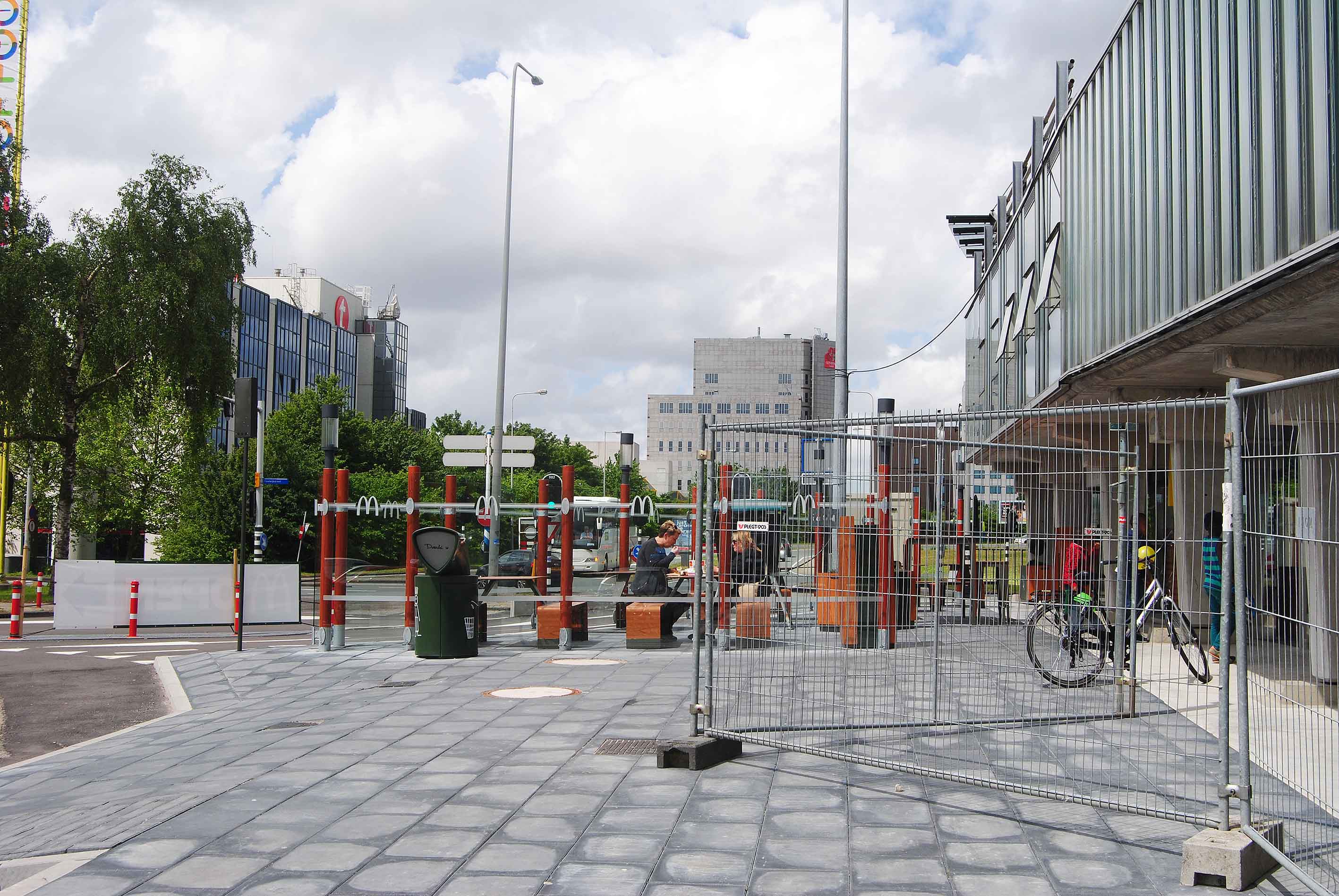 Ondertussen wordt hard gewerkt aan nieuwe Zuidooster Hotspot, natuurlijk ook in de Bijlmer: het worldfood centrum in de oude garage van Develstein aan de Daalwijkdreef, onze grens met Diemen en Duivendrecht. Achter hoofdattractie McDonald aan de dreefkant moeten daar enige tientallen kleine restaurantjes van allerlei starters op de horecamarkt aan de slag. Multicul, ambachtelijk bereid voedsel onder de paraplu van imperialistische fastfood, met op de begane grond een groot studentencafé voor de nabij gelegen campus in containerblokken. Eind mei zou het zijn deuren openen, maar begin juni draait alleen nog McDonald. Het café kan binnenkort open, zo lijkt, en de rest heeft net een vloer leggen.