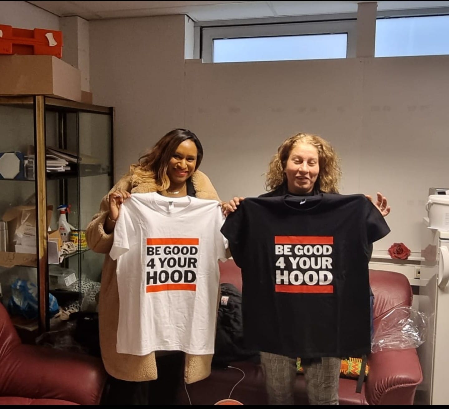 Als je de website van de stichting bezoekt, zal het je op zeker moment opvallen, dat er eigenlijk niets concreets op staat, zeker geen programma van activiteiten en goed omschreven doelen, wel vage verwijzingen naar dingen, die zouden kunnen komen. De enige duidelijke pagina op de site is de verkoopadvertentie van het bedrijf, waarmee de stichting t-shirts verkoopt: de t-shirts die Laila en Maureen aan het volk showen: Be Good 4 Your Hood.