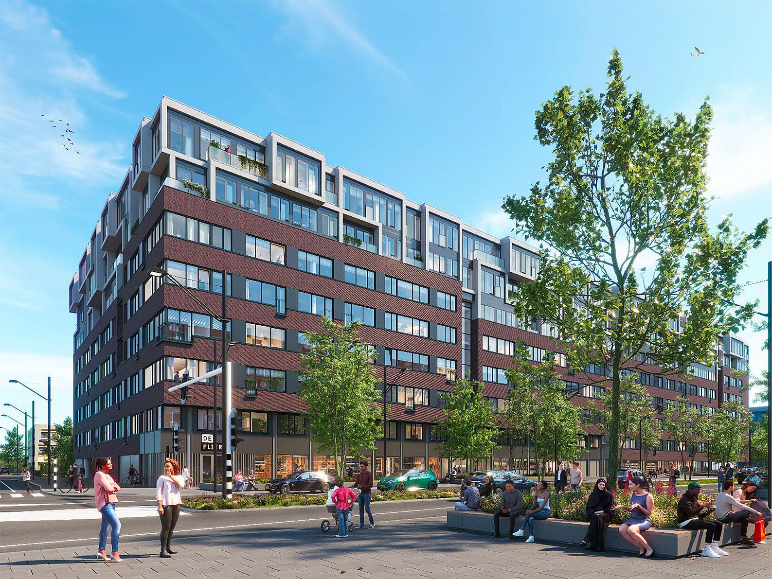 De 208 sociale huurwoningen en 89 middelhuur in De Flier (het oude belastingkantoor met opbouw) op de hoek van de Flierbos- en Bijlmerdreef) beginnen qua huur met een bedrag van 805 en een ruimte van 16m2. De grootste woningen zijn niet meer dan 49 m2. Het zijn vooral studio’s, in grootte gemiddeld zo’n 25m2 met allemaal een huurprijs van 805, en daarnaast 2kamer-woningen. Ze zijn bedoeld voor kort verblijvers, want allemaal gestoffeerd en gemeubileerd.